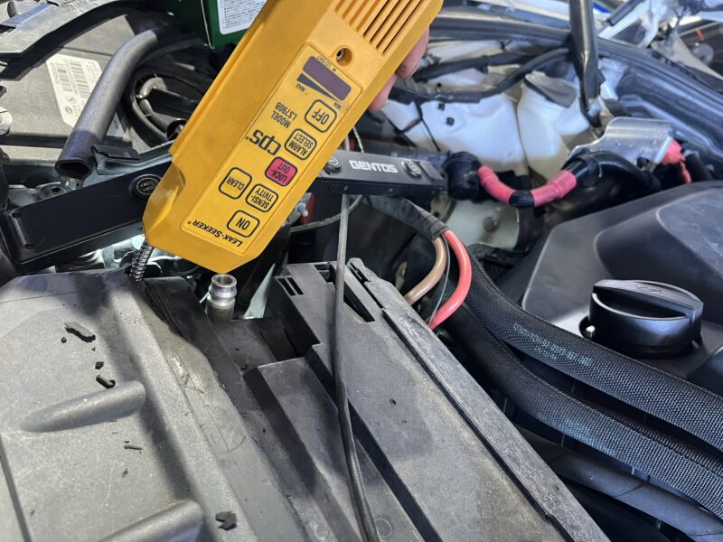 BMWのA/Cコンデンサーは、グリル等から覗いても外部からの目視確認が一部しか出来ないので、リークテスターでの検出結果による反応にて予め判断します。