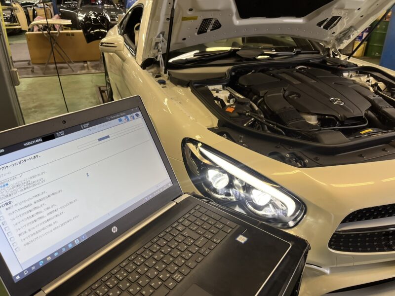チェックエンジン警告ランプが点滅作動して、エンジンの調子が悪い、R231モデル/ベンツSL400の点検です。