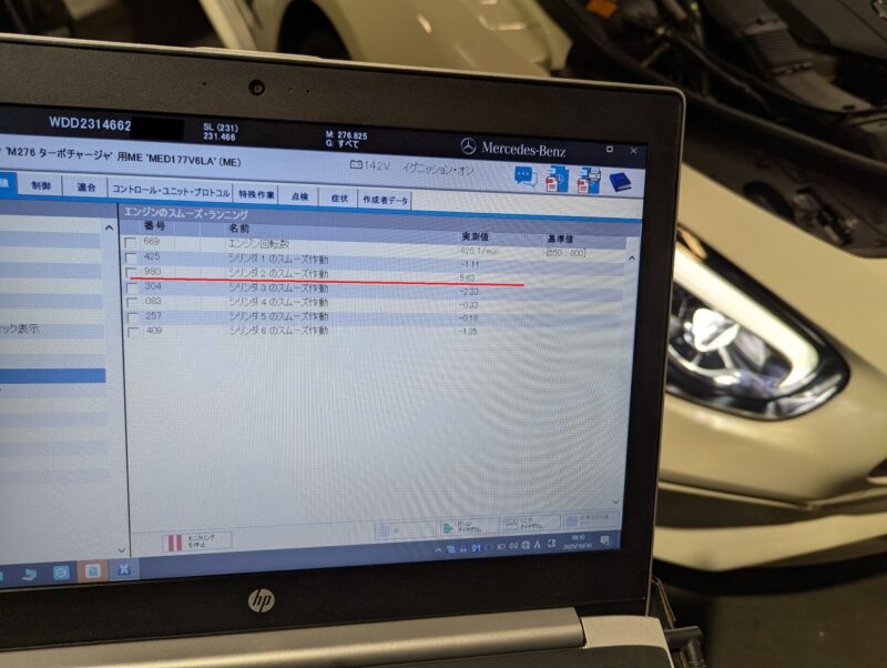 ミスファイヤ(失火)=イグニッションコイルやスパークプラグといった点火系の部品不具合を思い浮かべますが、SL400に276M30エンジンはV6直噴ツインターボエンジンとなる為、他の直噴エンジン同様にインジェクター不良が原因となる事例も少なくありません。