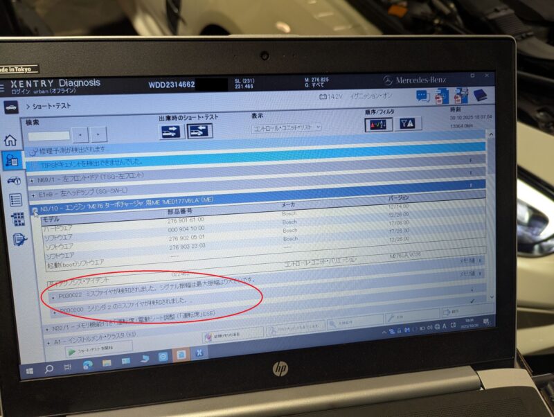 実際XENTRY診断機でのテストプロセスも燃料系の点検項目等が重要視されていますが、結論から言えば意外と単純にスパークプラグの劣化により交換したら復帰するケースも多く体験しています。