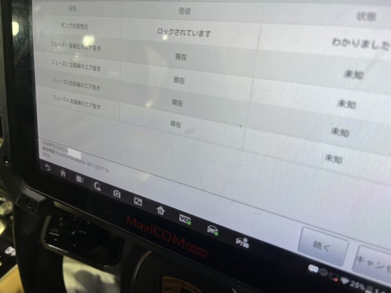 今回のパナメーラはHV(ハイブリッドモデル)となる為、ブレーキフルードの交換/エア抜き作業はテスターを使用して行うことになります。