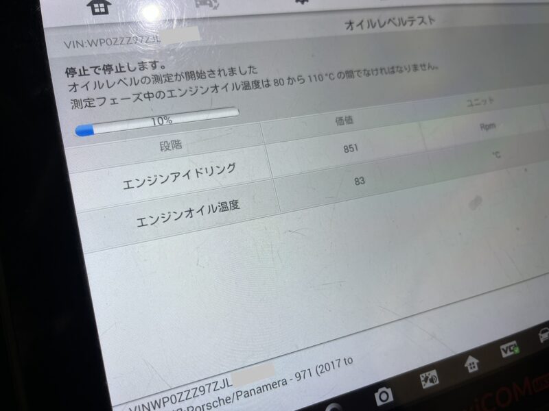 またエンジンオイル交換後のレベル測定も、E-CHARGEモードでエンジンを始動させて適正油温まで上昇させ、テスターにより計測作業を行うことになります。