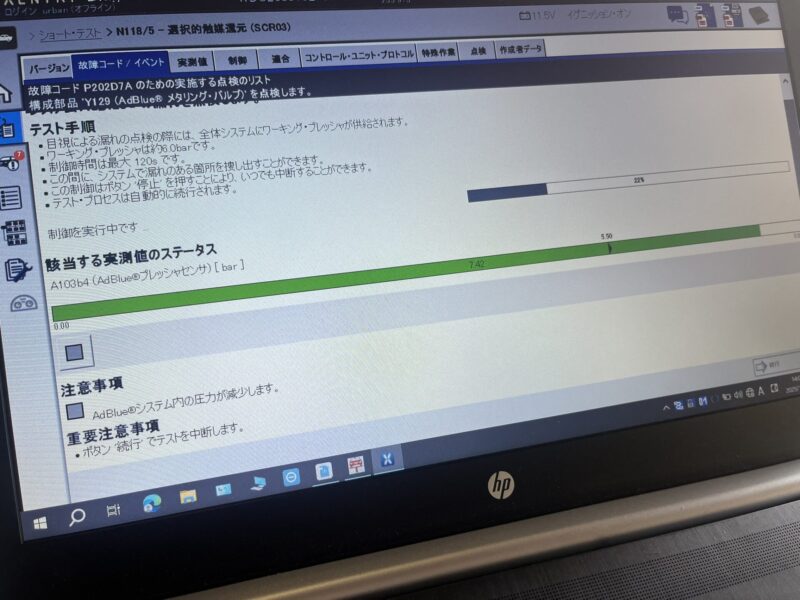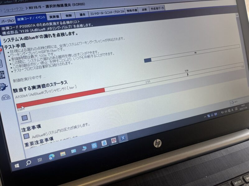 サプライポンプの圧力上昇機能を確認して、メタリングバルブからのAdBlue配分量を直接計測し、その配分値によって清掃もしくは交換が必要か否かの判断となります。