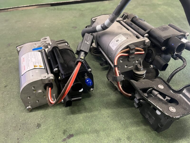新しい部品を取り寄せて、アンダーフロアに装備されているエアサスペンションコンプレッサーの組み換え作業。