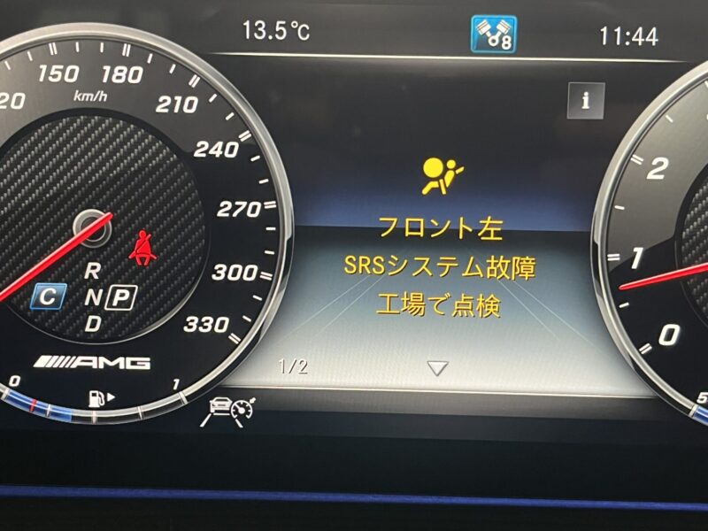 SRSとはSupplemental(補助) Restraint(拘束) System(装置)の略で、現車はこの警告によって助手席側のエアバッグが制御できない状態に陥っています。