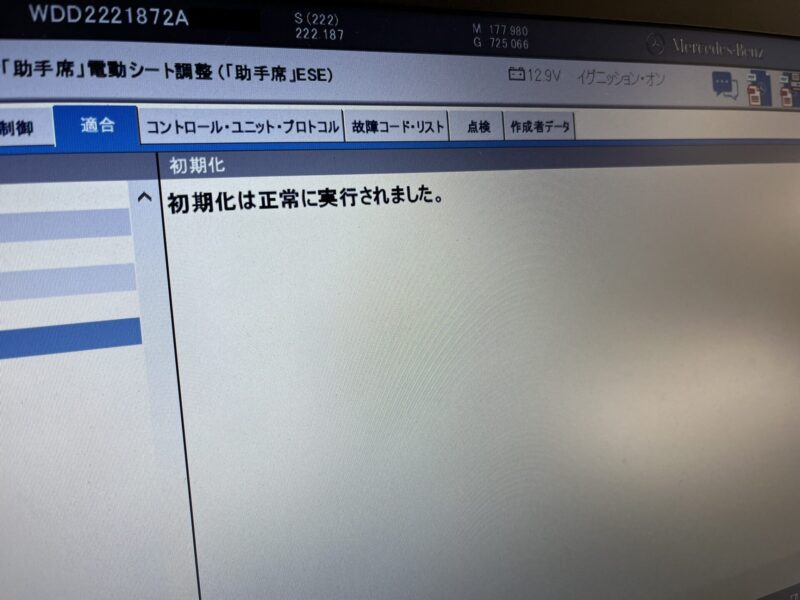 XENTRYでのシートポジションキャリブレーションによる初期化成功後は、先のDTCもすべてクリア可能となり、警告メッセージも表示しなくなりました。