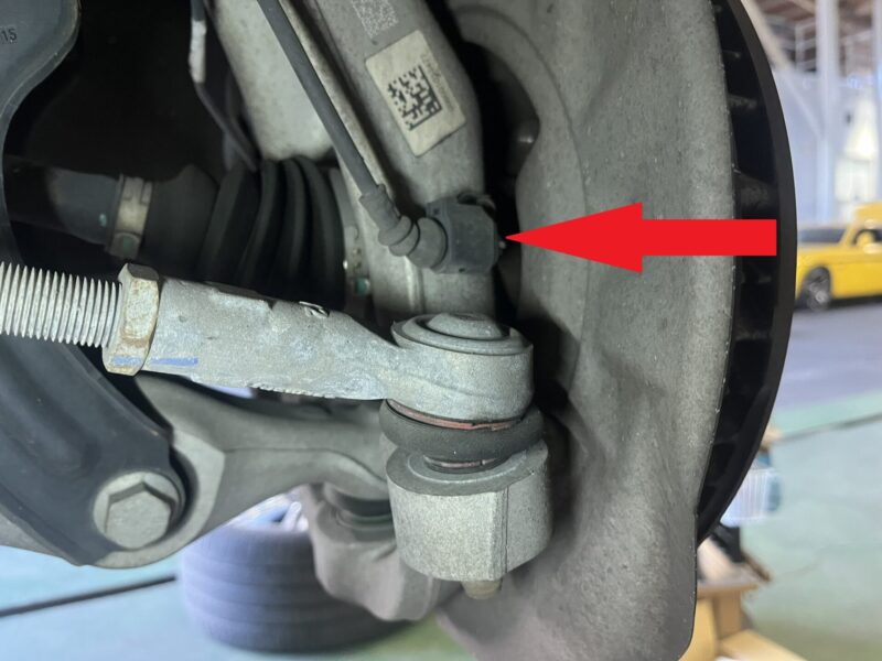 今回の不具合では、右フロントに取り付けられている車速センサーの不良により、上記症状に陥っていました。
