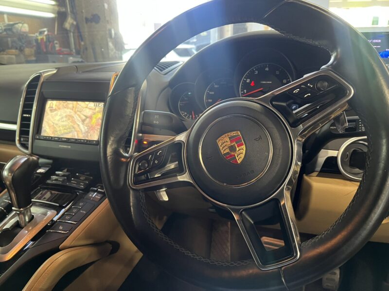 4WDシステム及びPSM警告が表示され、アクセルを踏んでもアクセル制御が働いている状態でエンジン回転が上がらず=クリープ状態でしか動けなくなった、92Aモデル/ポルシェカイエンの修理作業です。