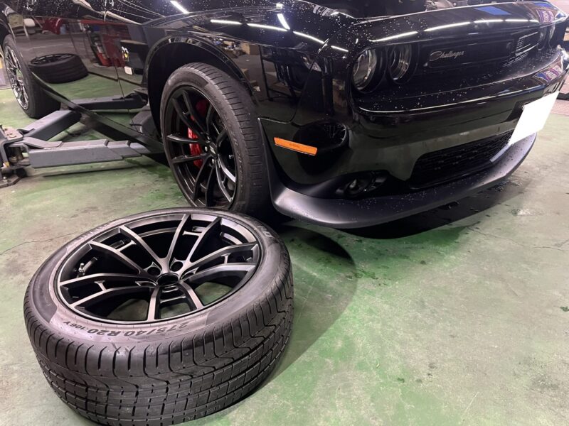右フロントのアルミホイル損傷にて交換作業を行った、2021yダッジチャレンジャーの作業です。