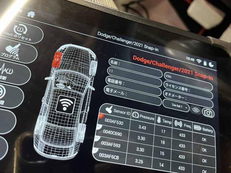 各アルミホイールに装備されているTPMセンサーは其々固有のIDを有しており、部品交換=装備されていたセンサーのIDが異なる為、車両側に登録されているIDに対する再学習プロセスが必須となります。