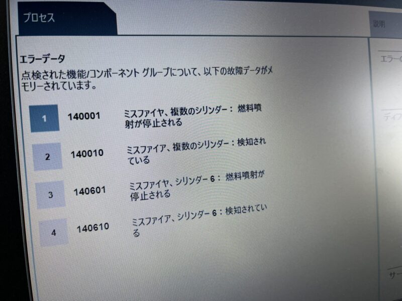 早速ディフェクトメモリを確認すると、案の定ミスファイヤ検知がデータメモリされています。