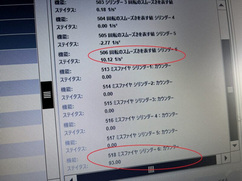 シリンダーバランスのステイタスを測定すると、No6シリンダーにその問題が発生していると判断出来ます。
