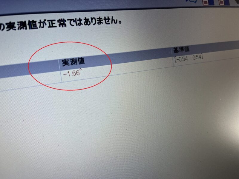 今回の不具合では、レーダーセンサーであるDTRの水平調整位置が大幅にズレてしまっている為、DTRの検知値に問題が生じてブレーキアシスト機能が使えなくなっている状態です。
