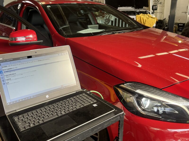 アクティブブレーキアシスト機能に対する故障メッセージが表示されてしまっている、W176モデル/ベンツA180の点検/修理作業です。