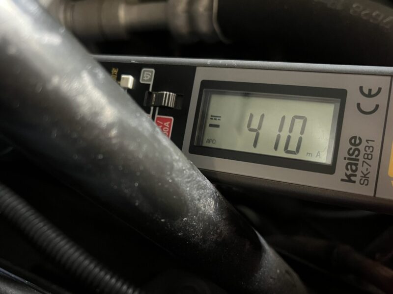 暗電流値を計測すると、小一時間経過しても400mA以上の電流が消費=何れかの箇所で漏電が発生しているのは明白です。