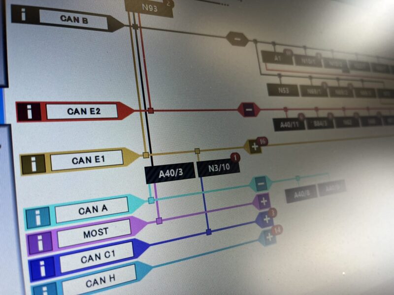 こういったネットワークエラー症状の場合、それらに属する何れかのECUの問題により、ネットワークウイルスによって回路が不成立になってしまっている可能性が高いので、症状発生時にE2回路の各データーラインを点検していくことで原因探求していきます。