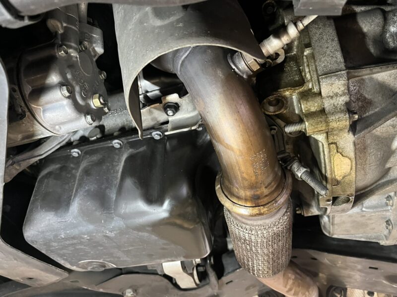 但し、オイルエレメントハウジングの取付状態確認や脱着作業を行うには、タービンやキャタライザー(触媒)等が覆いかぶさっているので、それらをまず取り外す必要性があります。