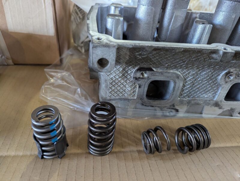 ちなみに破損したバルブスプリングは、部品形状が変更されている(画像左側が新品部品)ので、片バンク側全てのバルブスプリングをリフレッシュ。