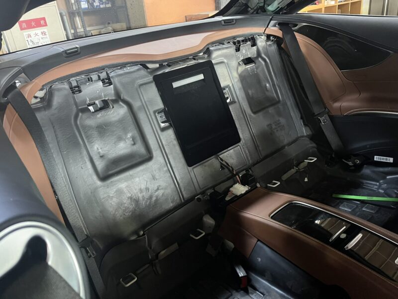 ストローク容量のあるリアストラットのアッパーマウントはリアトレイ部に位置している為、リアシート及びリアトレイ廻りを全て取り外すことになります。