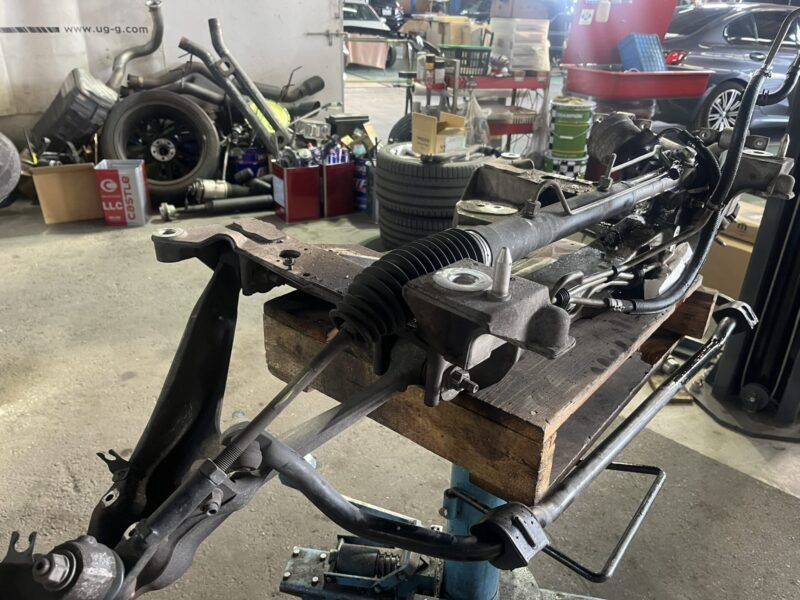 この状態であればエンジンオイルパンの脱着も容易に可能で、このタイミングで左右エンジンマウントもリフレッシュしておきます。
