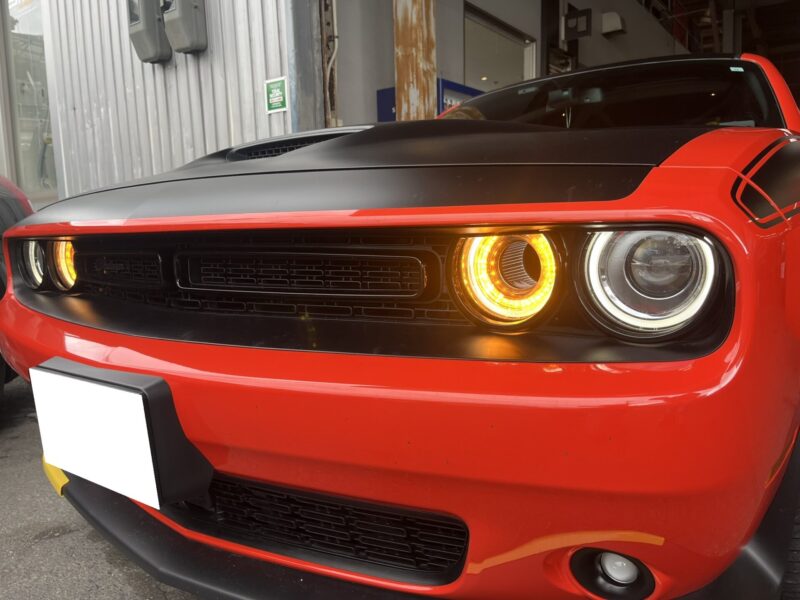 ウインカーデイライトの選択コーディングにてお越しいただいた、LAモデル/ダッジチャレンジャーの作業です。