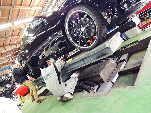 3日後納車の300C、ホイールペイント完了! ピットの上のマグナムは エンジンマウントの交換中です ^^ 齊藤