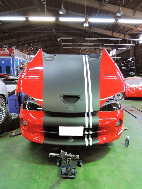 マフラーの修正が終わったチャレンジャー オーナー様が引き取りにご来店下さいました いつもご来店ありがとうございますっ!* ヘダースを交換、の準備中 バイパー 見てるとわくわくします ^^ 齊藤